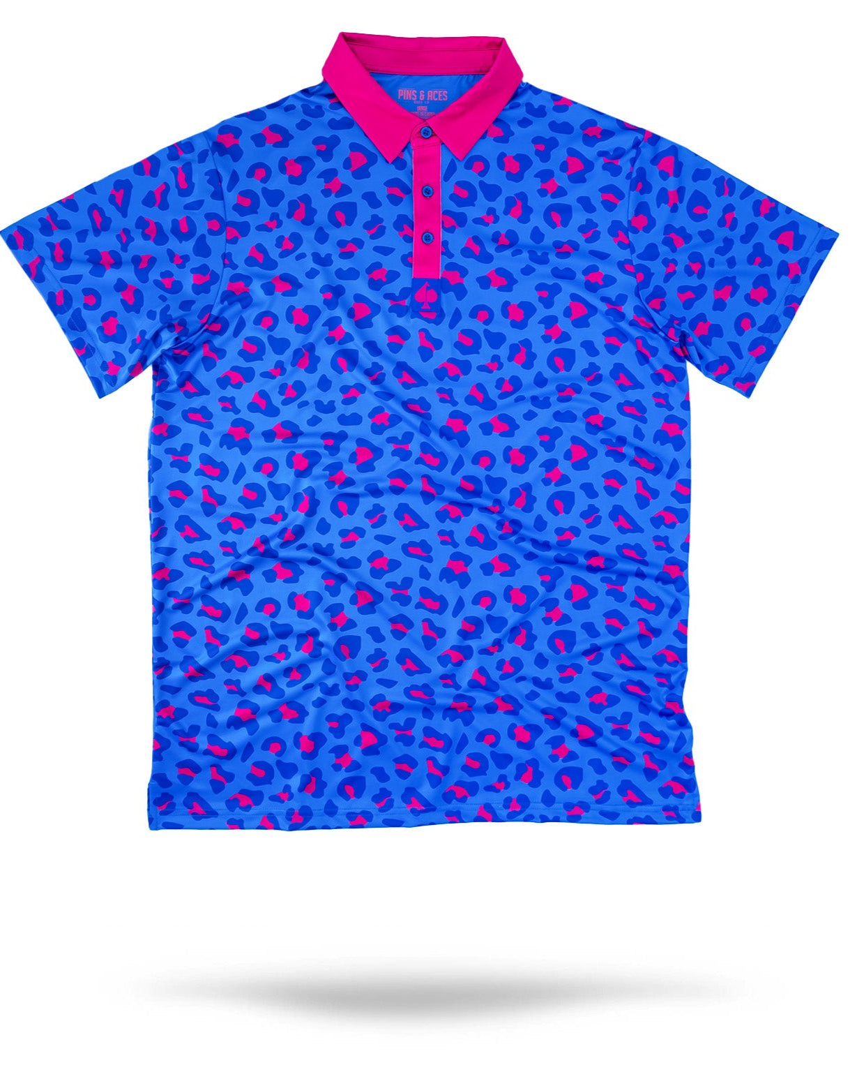 Men's golf shirt featuring a stylish palm leaf pattern in shades of gray, perfect for a bold look on the course.