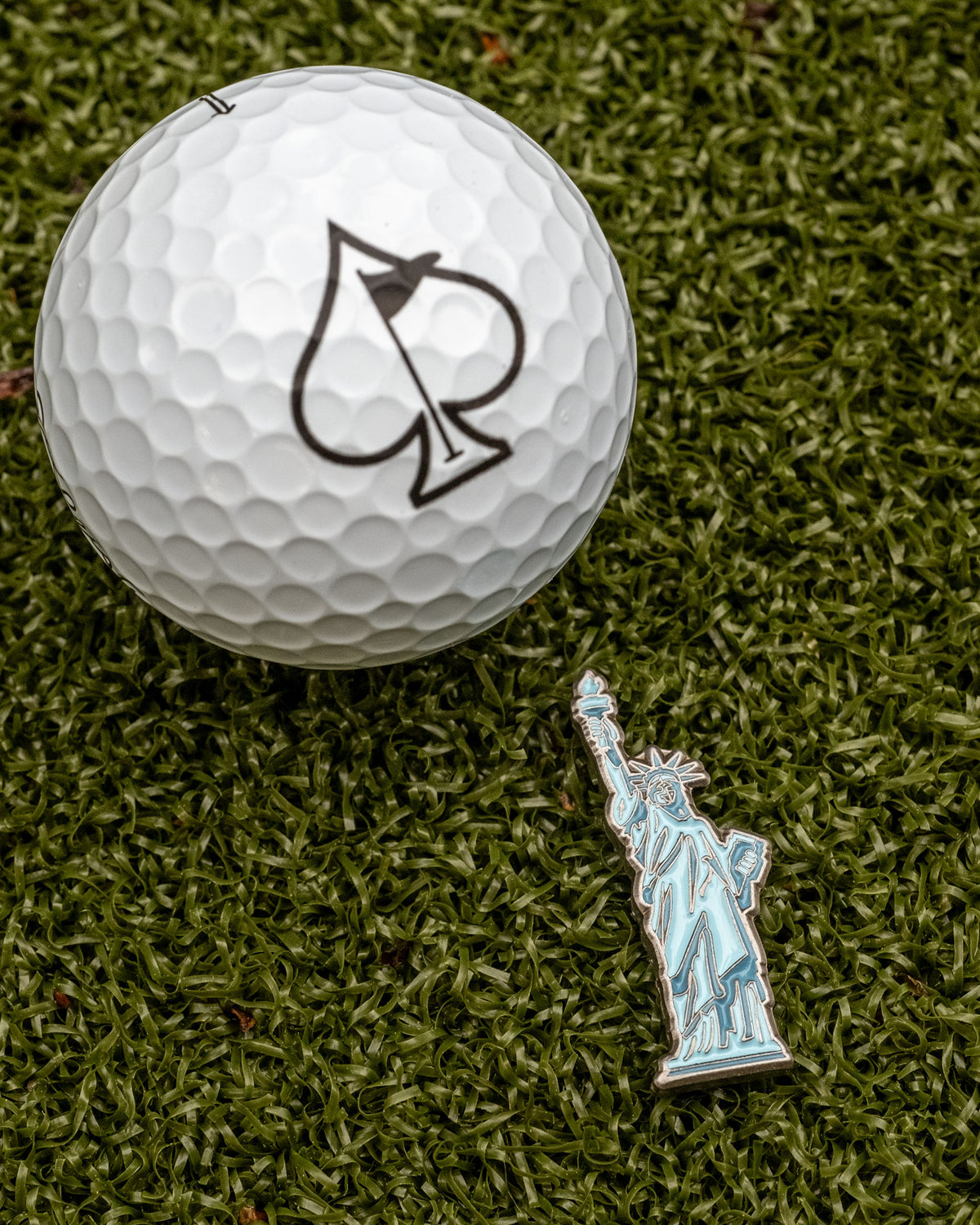 Alt text: Uncle Sam-themed golf ball marker featuring a patriotic design with red, white, and blue colors.