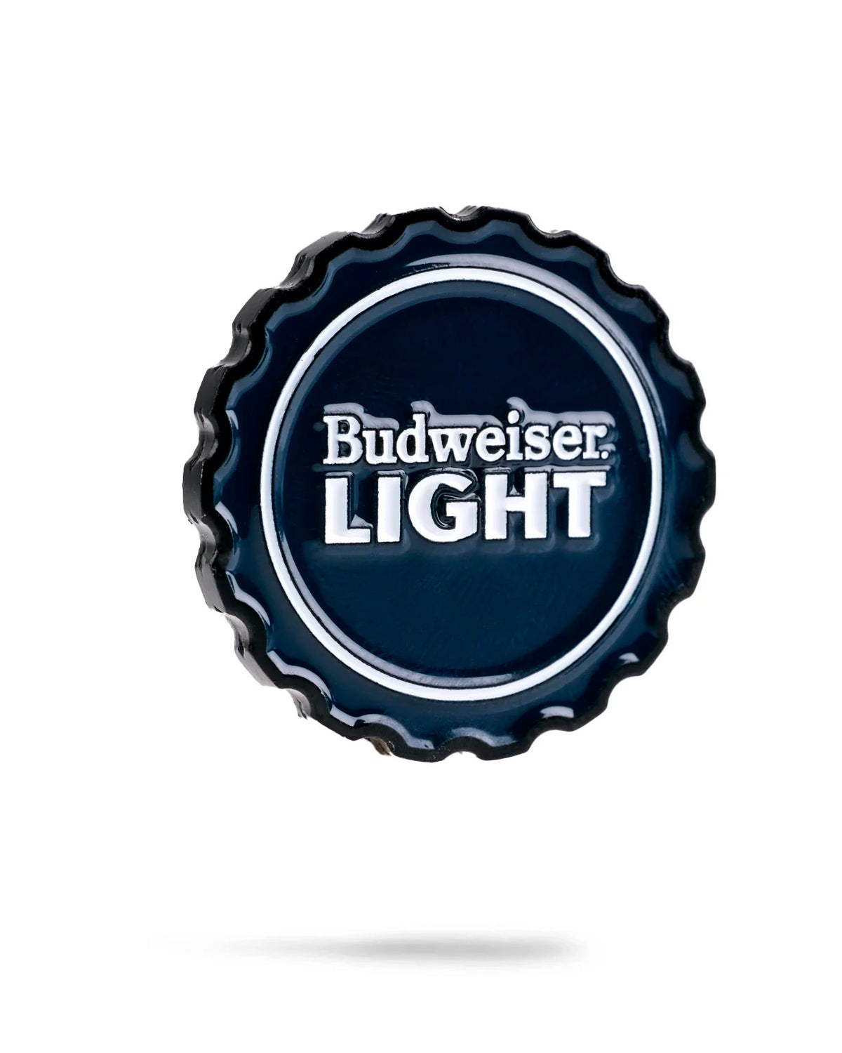 Bud Light Pint Ball Marker featuring the Bud Light logo, designed for golf enthusiasts, set on a white background.