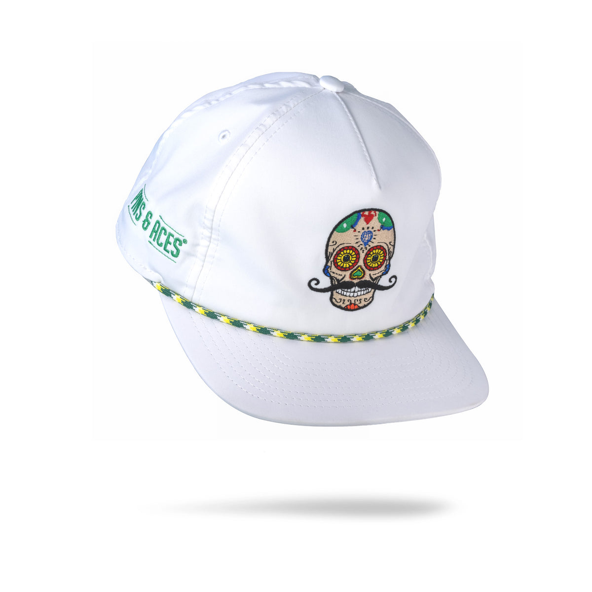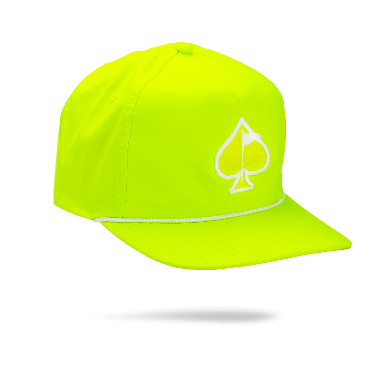 Heritage Rope Hat in white and navy featuring a spade logo, designed for stylish golfers seeking standout accessories.