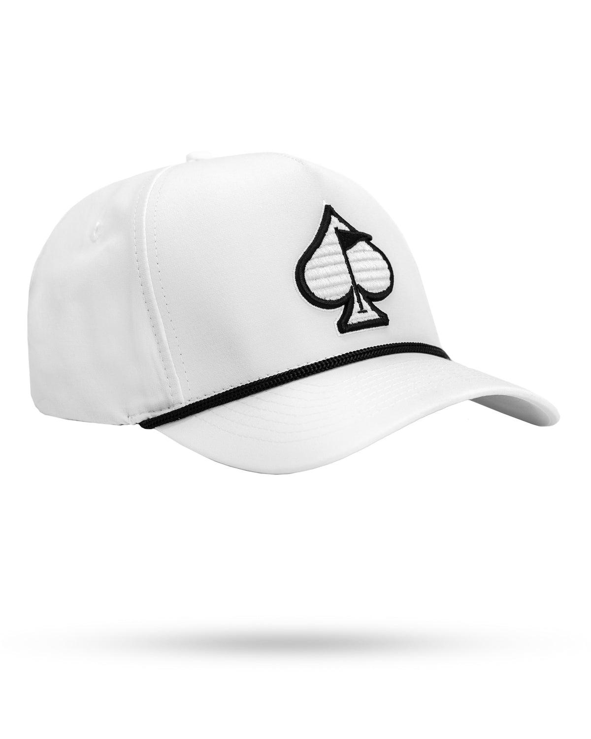 Alt text: "Ace of Spades ball marker for golf, designed to look like a playing card with a prominent black spade symbol and the letter 'A' on a white background."