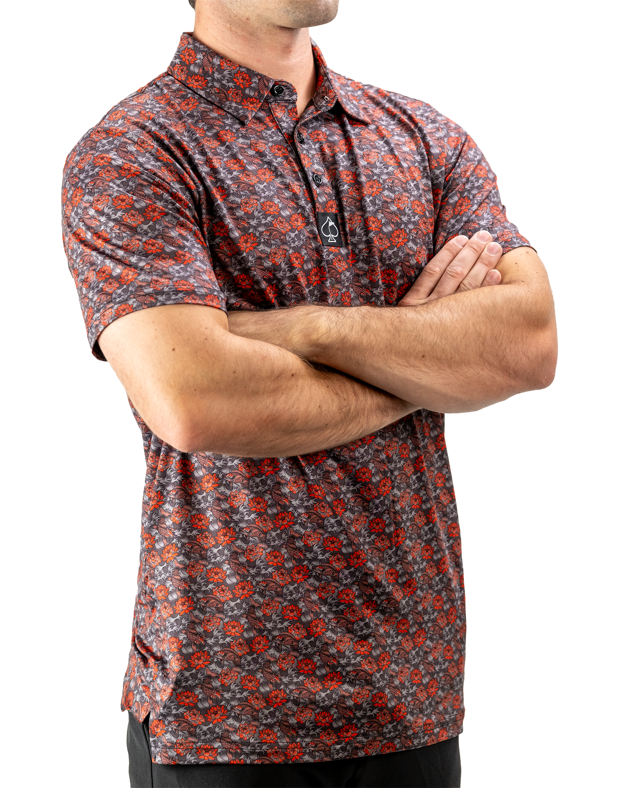 Men's HEYDUDE Polo in Black Hole design, featuring a stylish, modern cut with a unique abstract pattern.