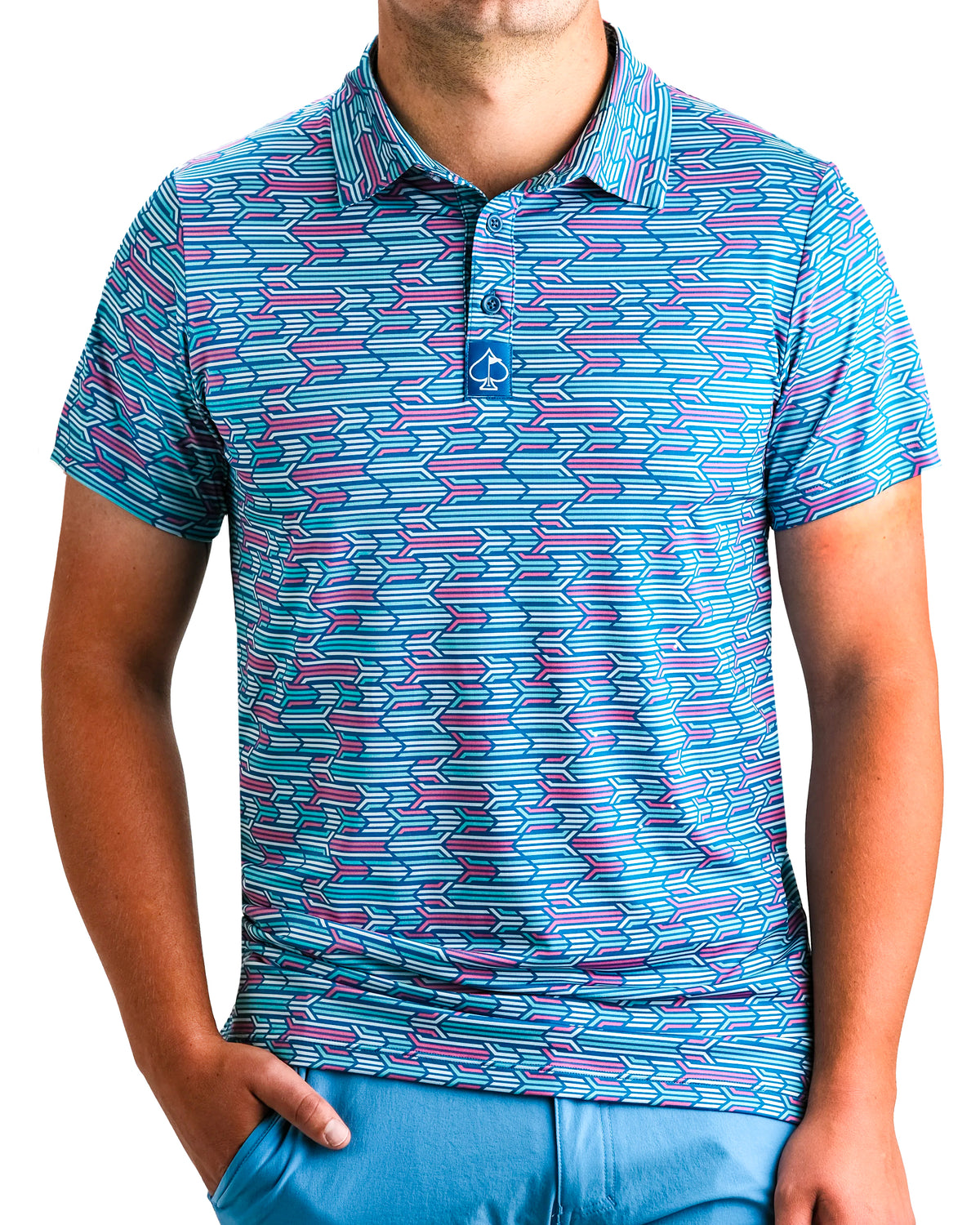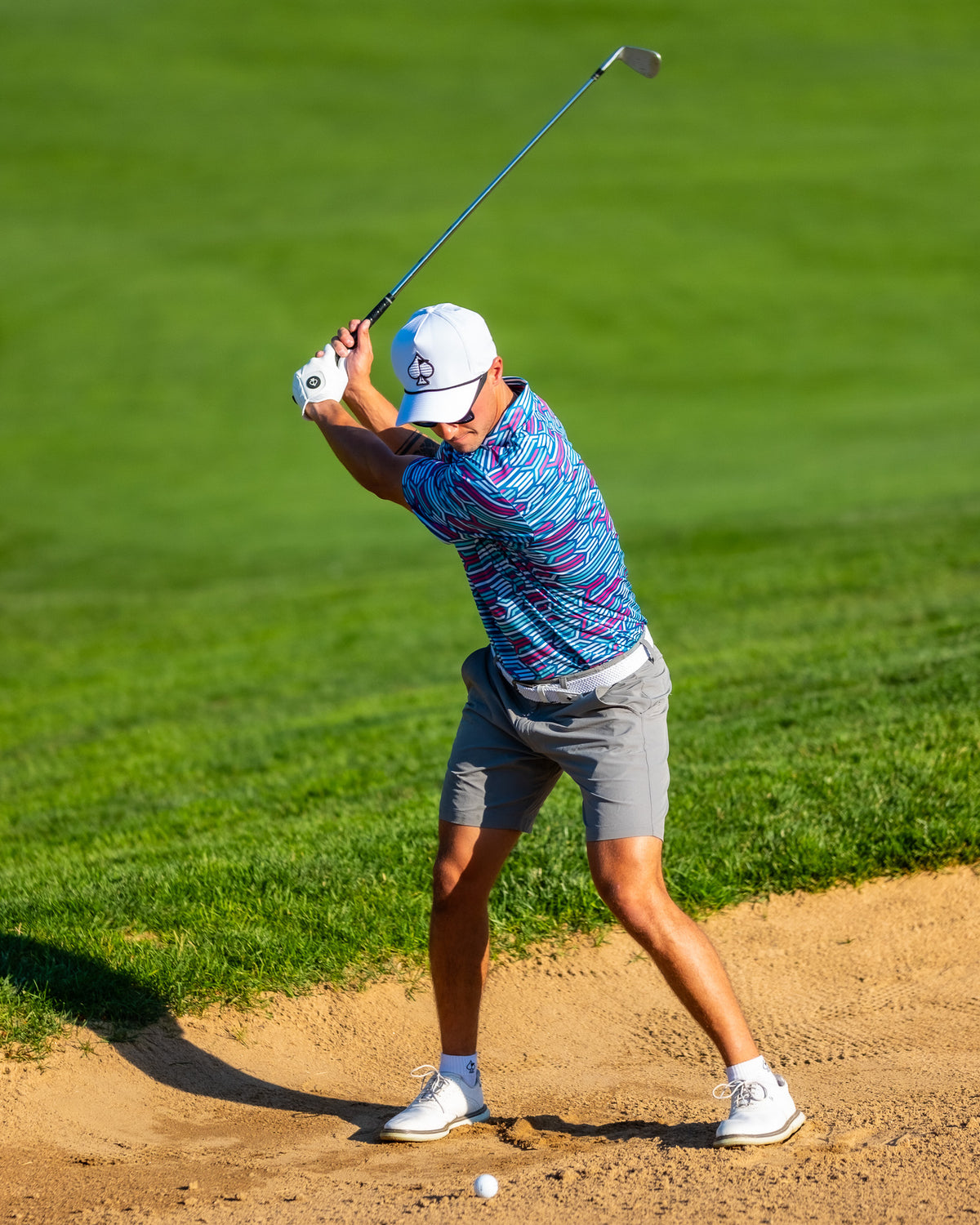 Pins and Aces Bold golf headcover featuring a colorful, eye-catching design with vibrant reds, blues, and yellows, perfect for standing ...