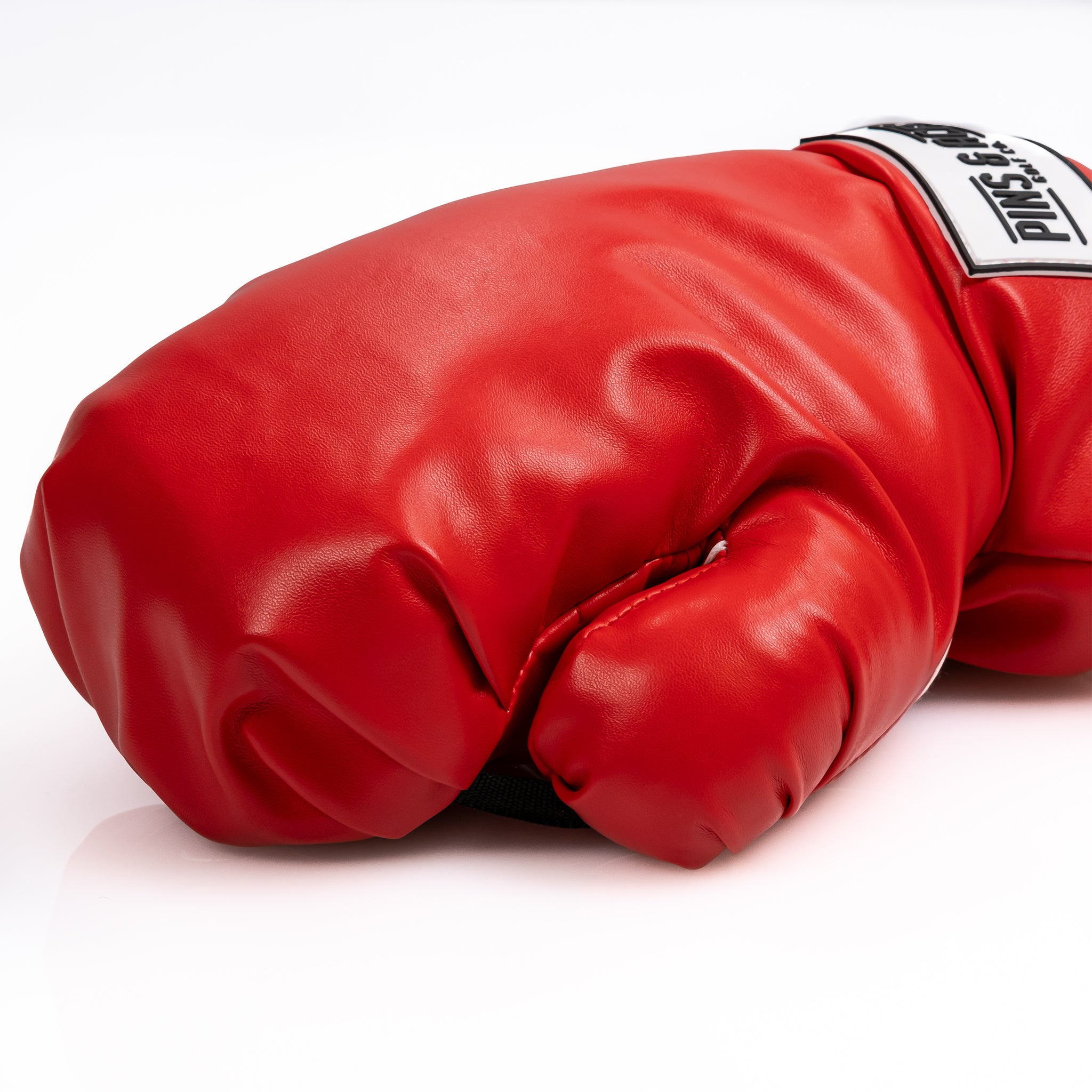 Bold red boxing glove driver cover featuring the Pins & Aces logo, designed for golfers who want to stand out.
