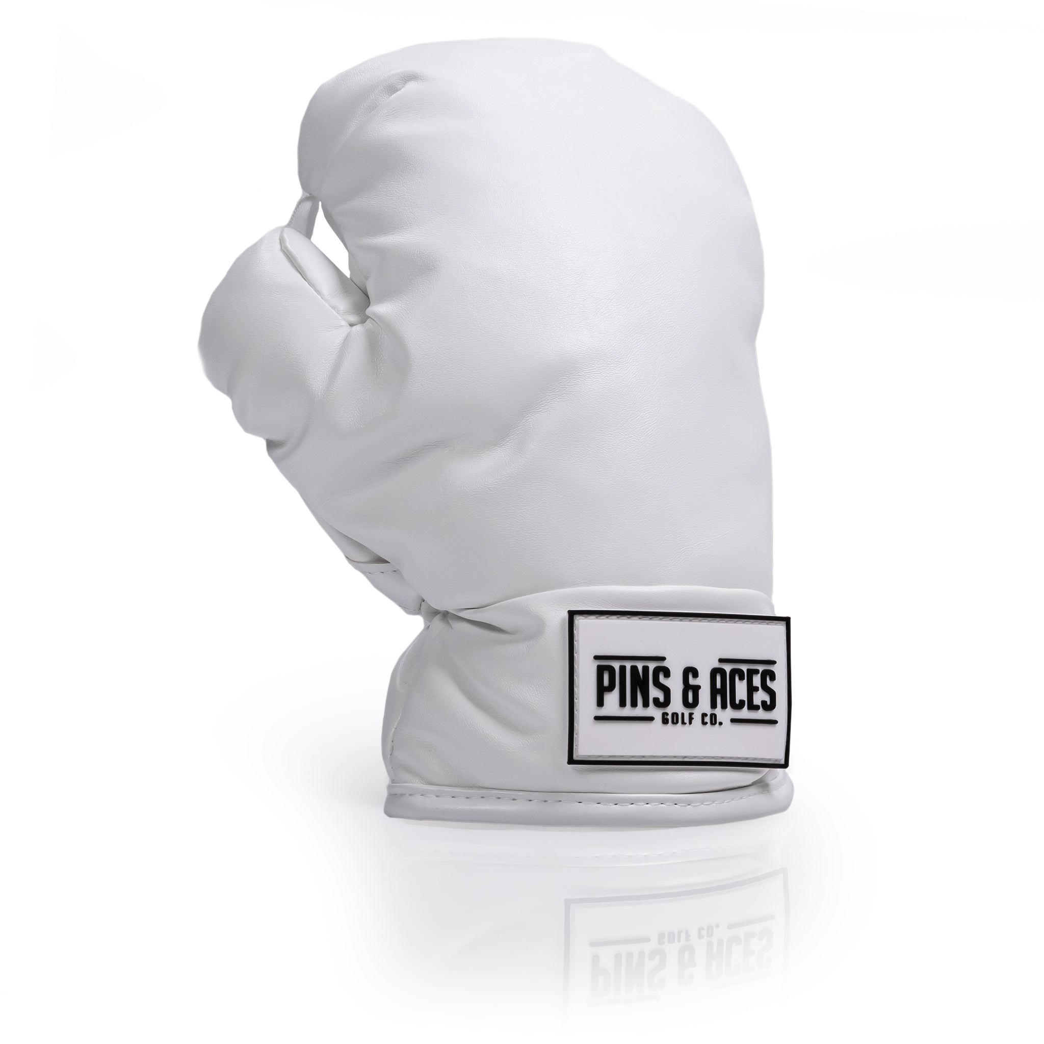 White boxing glove-shaped driver cover from Pins and Aces, designed to add a unique flair to your golf bag.