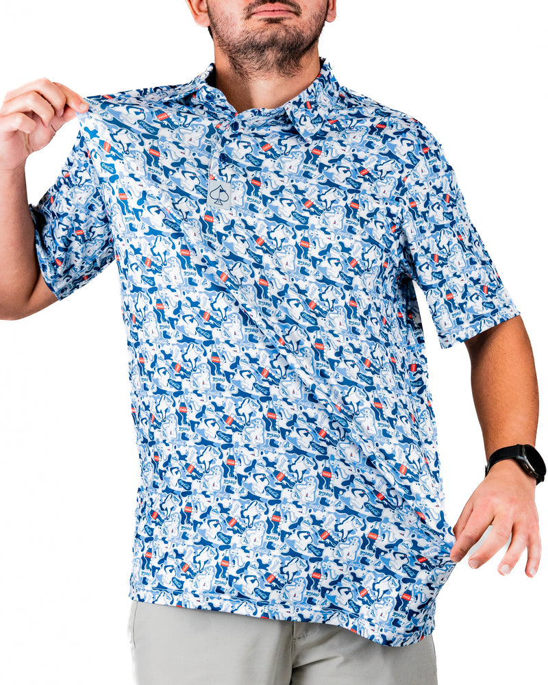 Our polos are built to perform and designed to stand out. Bold prints, premium performance fabric, and thoughtful details like a built-in sunglasses holder mean you get a shirt that plays as hard as you do.