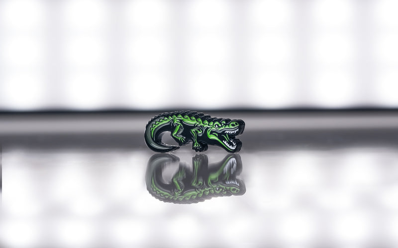 Crocodile-shaped ball marker featuring vibrant green and black colors, perfect for adding style to your golf game.