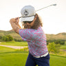 Youth Electric Camo golf shirt featuring a vibrant camouflage pattern, perfect for young golfers who want to stand out.