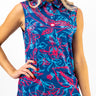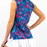 Women's Cabo Colada Sleeveless golf top featuring a vibrant floral pattern in blue and pink, perfect for stylish play on the course.