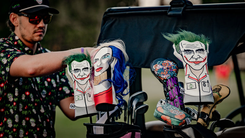 Joker mallet putter cover in XL size, featuring a colorful design with a playful Joker character and secure fastening.