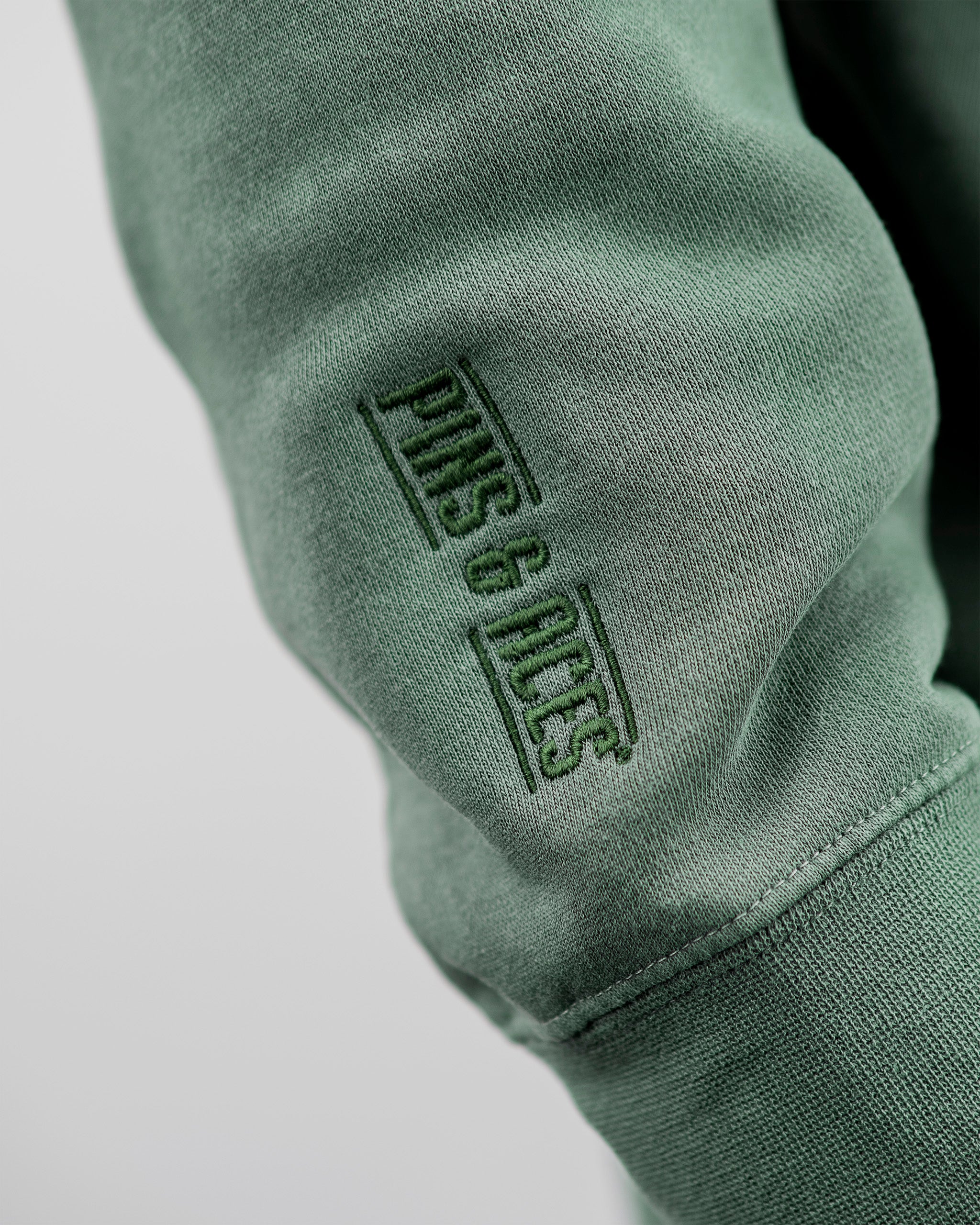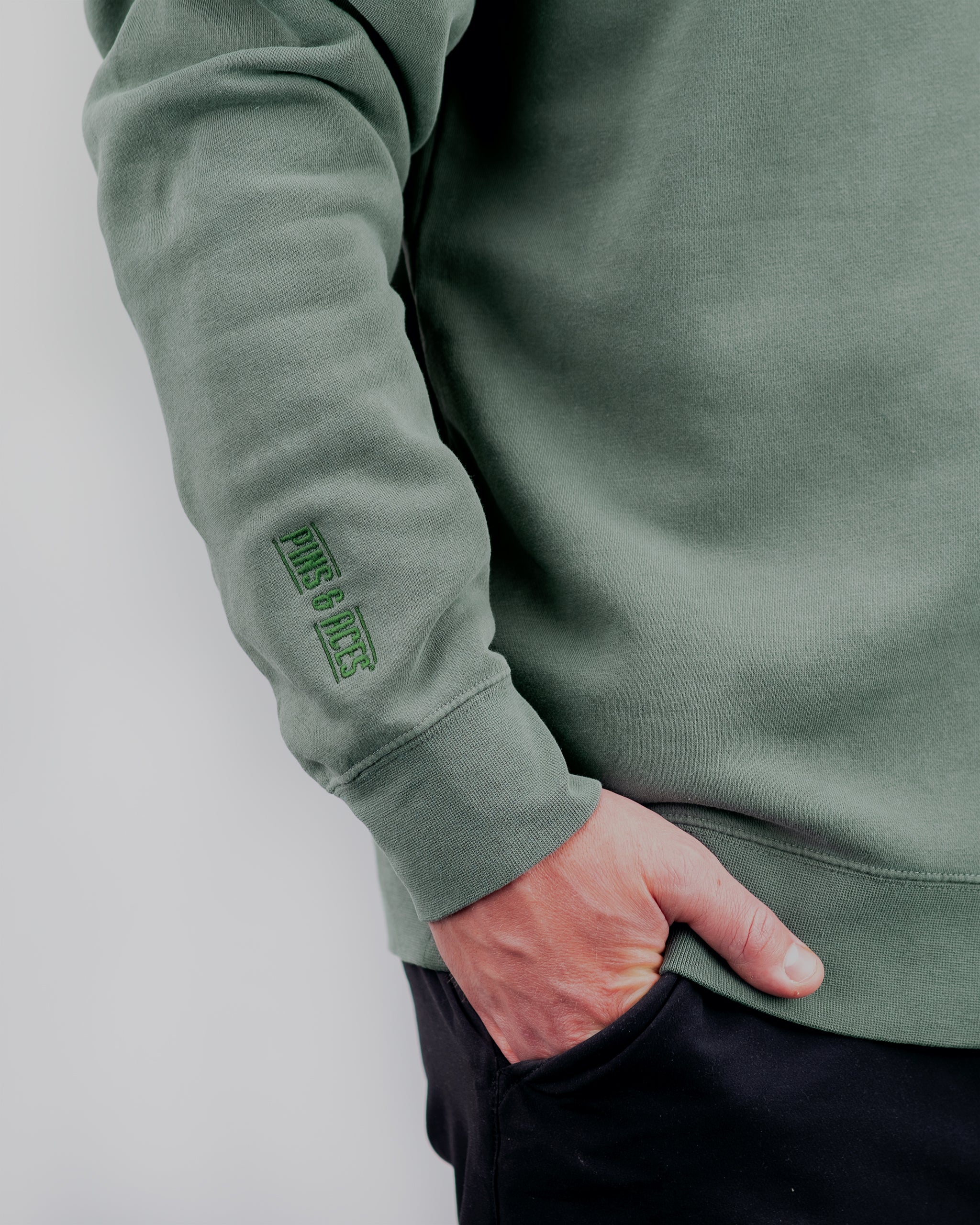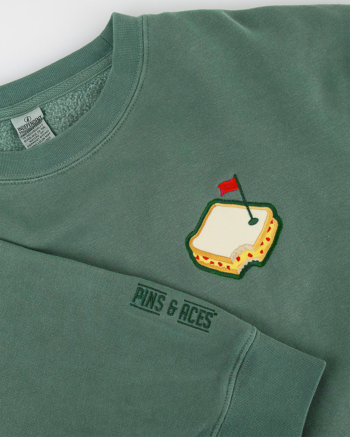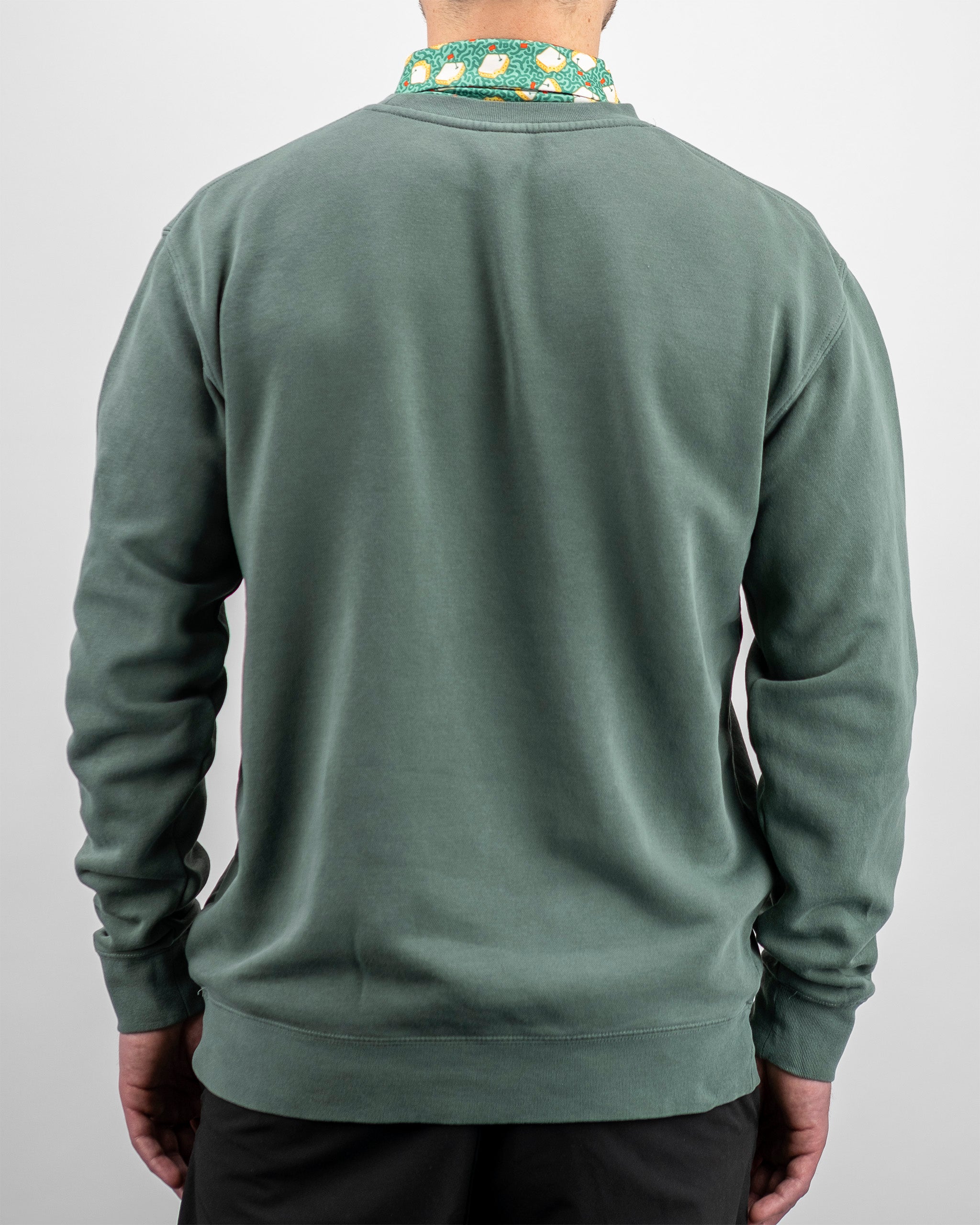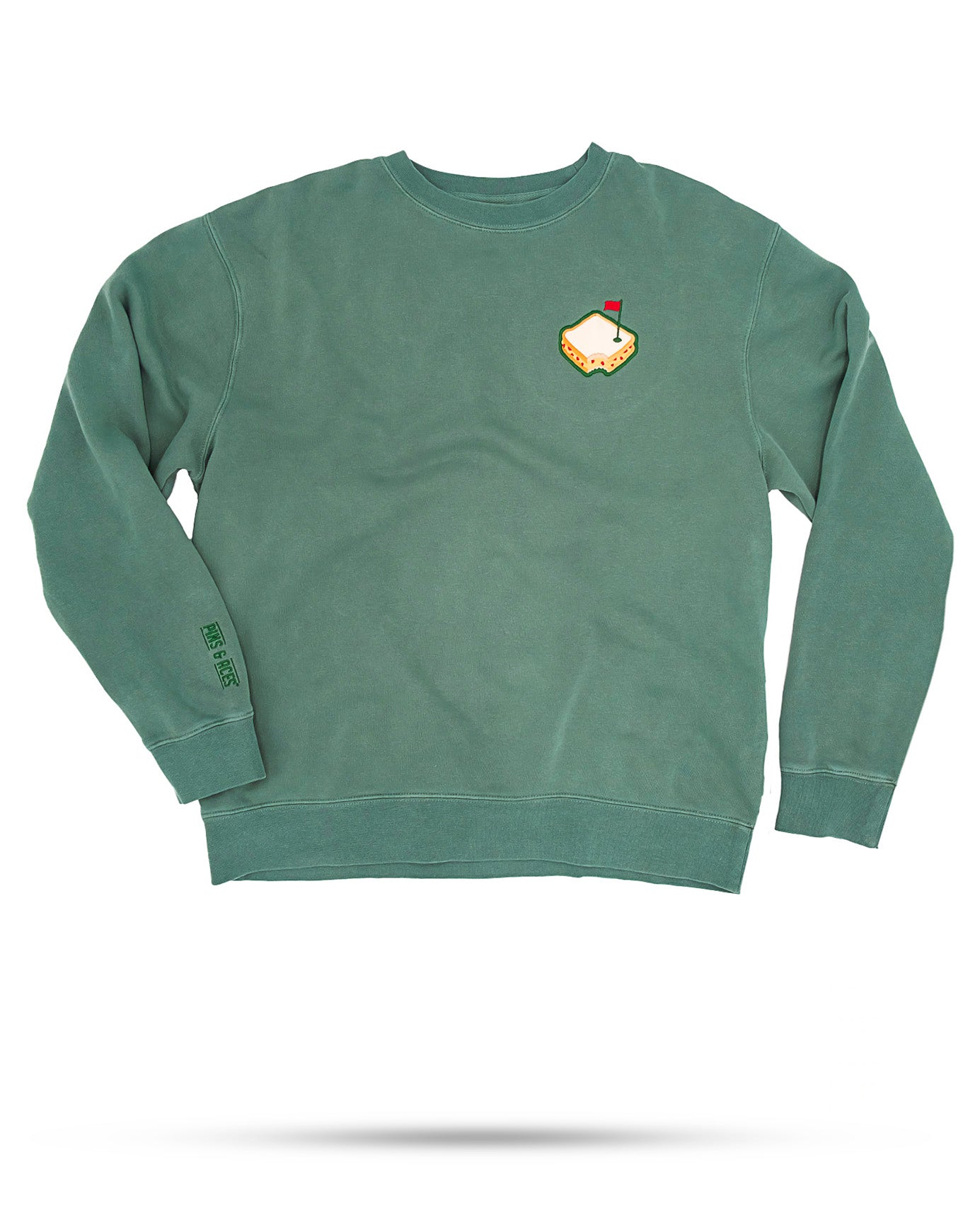 Olive green waffle knit pullover with a quarter zip and logo, perfect for stylish comfort on the golf course.