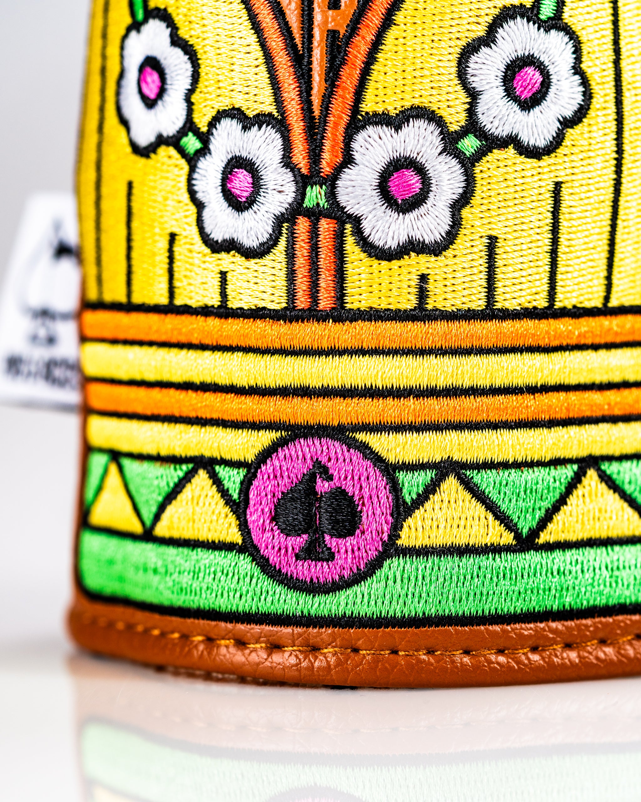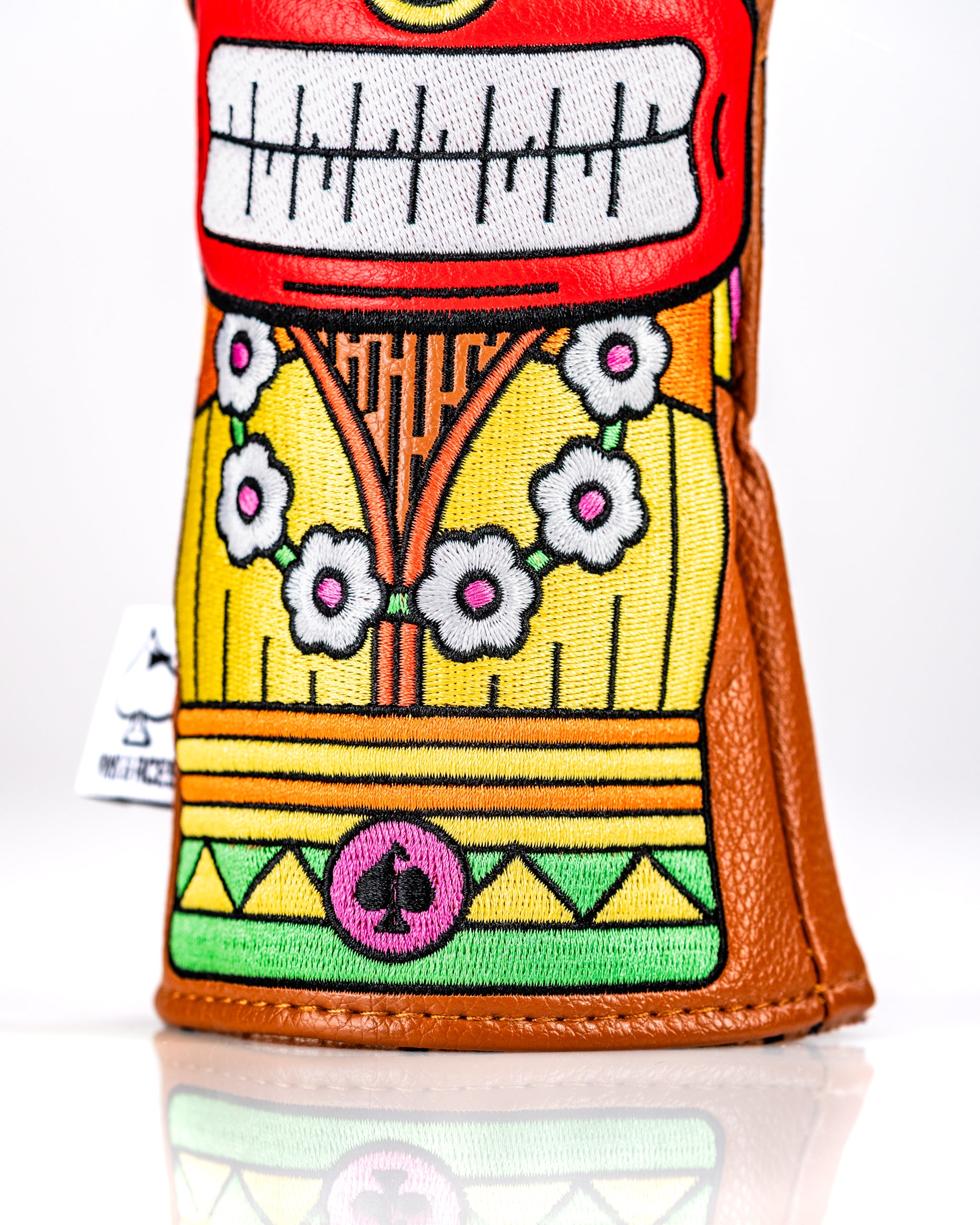 Colorful Tiki hybrid golf cover featuring vibrant embroidery and a playful design, perfect for stylish golfers.